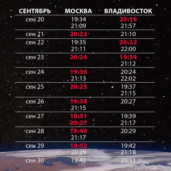 Дополнительно «Роскосмос» привел графики «высоких» пролетов МКС над Москвой и Владивостоком.