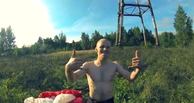 Молодые люди из московской "Команды грешников", занимающейся прыжками с обрывов, недостроенных зданий и вышек, выпустили шокирующее видео, в котором показывается, как канат крепится непосредственно к спине человека.
