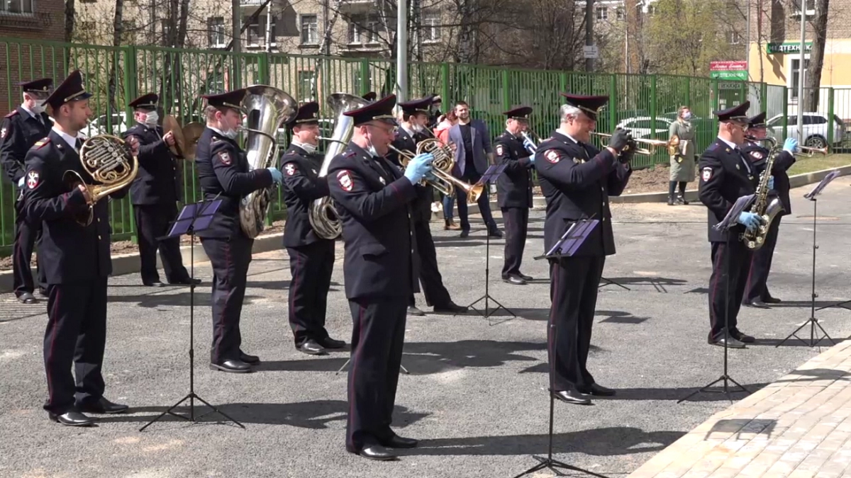 Российские полицейские присоединились к акции взаимопомощи «Мы вместе». В рамках этой акции духовой оркестр культурного центра Главно управления МВД РФ по Московской области посетил Мытищинскую городскую клиническую больницу, чтобы выразить благодарность медикам, которые лечат заразившихся коронавирусной инфекцией, и поддержать пациентов.