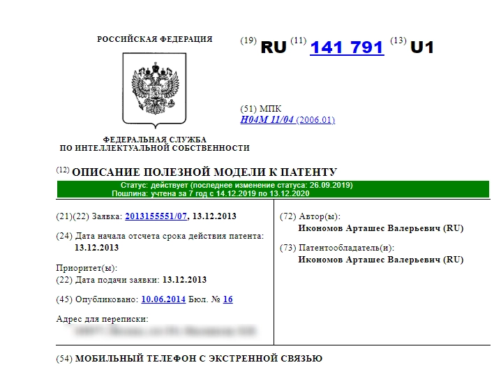 Роспатент выдал патент Икономову в декабре 2013 года. В документе указано, что россиянин признан изобретателем телефона, который позволяет осуществлять соединение с экстренными службами даже при нулевом балансе на счете или поломке сим-карты. Для таких звонков в телефоне по патенту Икономова должен быть специальный модуль.
