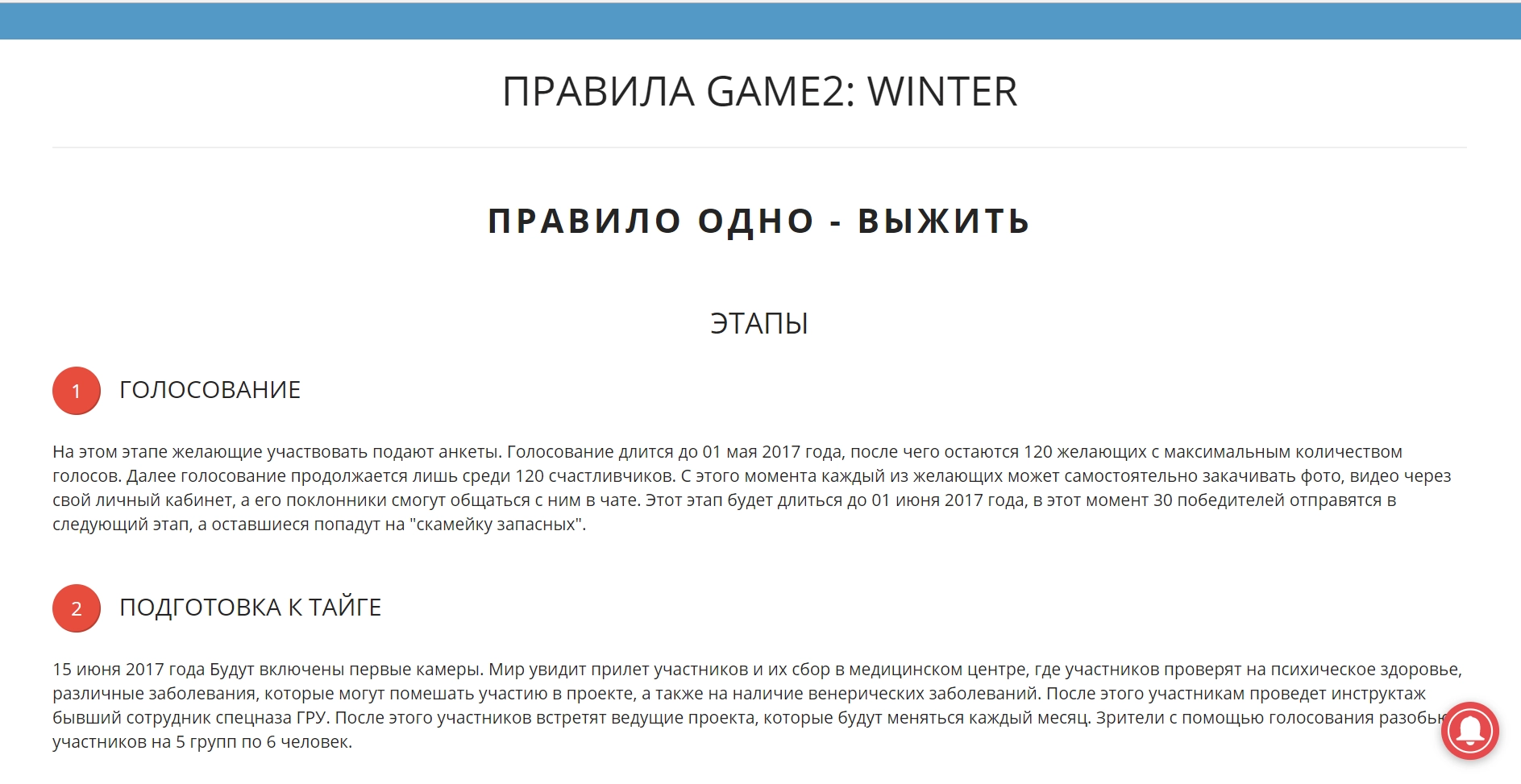 Кстати, сайт «Game2: Winter» предлагал посетителям оформить платную подписку на трансляцию шоу. Евгений Пятковский заявил, что вернет деньги всем подписавшимся, дабы не прослыть в народе мошенником.