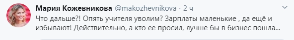 В защиту учителя выступила актриса и экс-депутат Государственной думы Мария Кожевникова в своем Twitter.