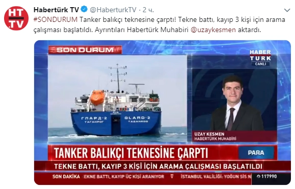 Следовавший под россиийским флагом танкер Glard-2 столкнулся с рыболовецкой лодкой в Черном море недалеко от побережья Турции, сообщает Habertürk.
