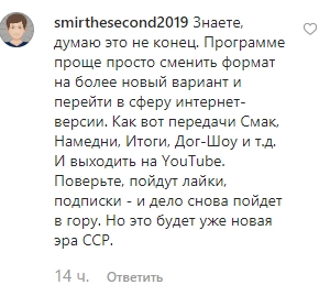 Подписчики Лысенкова в социальных сетях восприняли конец истории любимой телепередачи близко к сердцу. «Эфирное время наверняка займут очередным политическим шоу или, что ещё хуже, тупыми сборищами про грязное белье!», — заранее негодуют зрители.