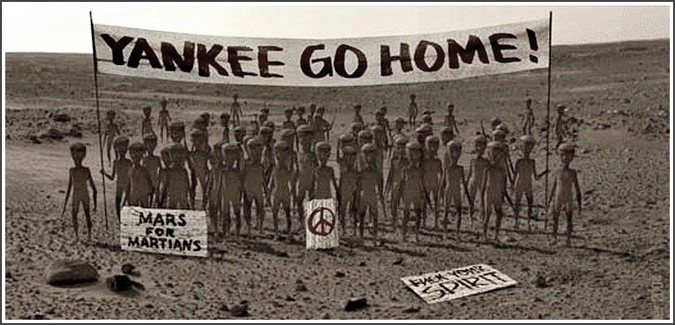 «Мы не должны думать, что человек — какой-то избранник космоса. Мы пока еще не настолько развились, чтобы лезть грязными ногами на другие планеты. Человечество изгадило Землю, теперь полетели гадить на других планетах?» — гневно говорит она.