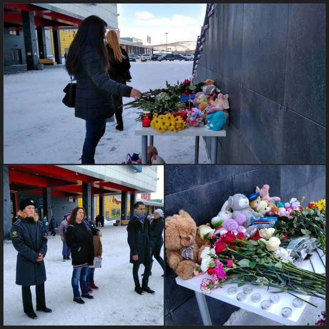 К импровизированному мемориалу у крупного торгово-развлекательного комплекса «Мурманск Молл» пришли сотни горожан. В их руках — цветы и игрушки в память о погибших в «Зимней вишне».