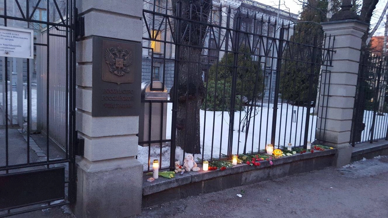 Почтили память погибших и жители столицы Финлядии, принеся цветы и игрушки к зданию посольства РФ. «После сообщения о трагедии в торговом центре в Кемерове 25 марта 2018 г. многие принесли к посольству цветы, свечи и игрушки. Глубоко благодарим всех, кто выразил таким образом соболезнования», — говорится в сообщении посольства.