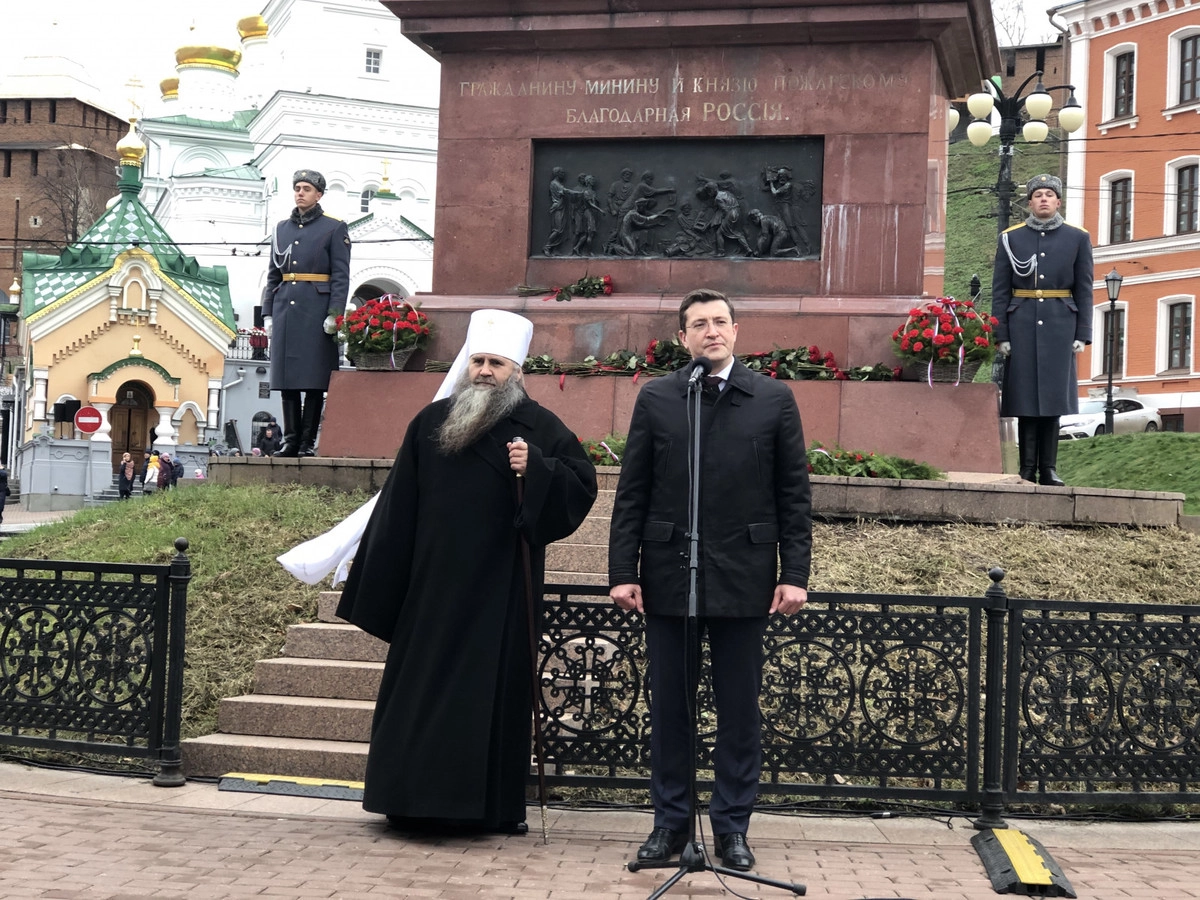 В Нижнем Новгороде торжества, посвященные празднованию Дня народного единства, стартовали с церемонии возложения цветов к памятнику Минину и Пожарскому. В церемонии приняли участие губернатор Нижегородской области Глеб Никитин, глава заксобрания региона Евгений Лебедев, Митрополит Нижегородский и Арзамасский Георгий, мэр Нижнего Новгорода Владимир Панов и другие.