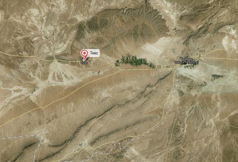 Судя по спутниковым снимкам, в 40 километрах к западу от Пальмиры находится небольшой населенный пункт Тияс, а еще в 15 километрах в том же направлении — авиабаза Тияс (Т4) с несколькими взлетно-посадочными полосами. Отсюда лететь до позиций исламистов гораздо ближе, чем с расположенной у средиземноморского побережья основной авиабазы Хмеймим.
