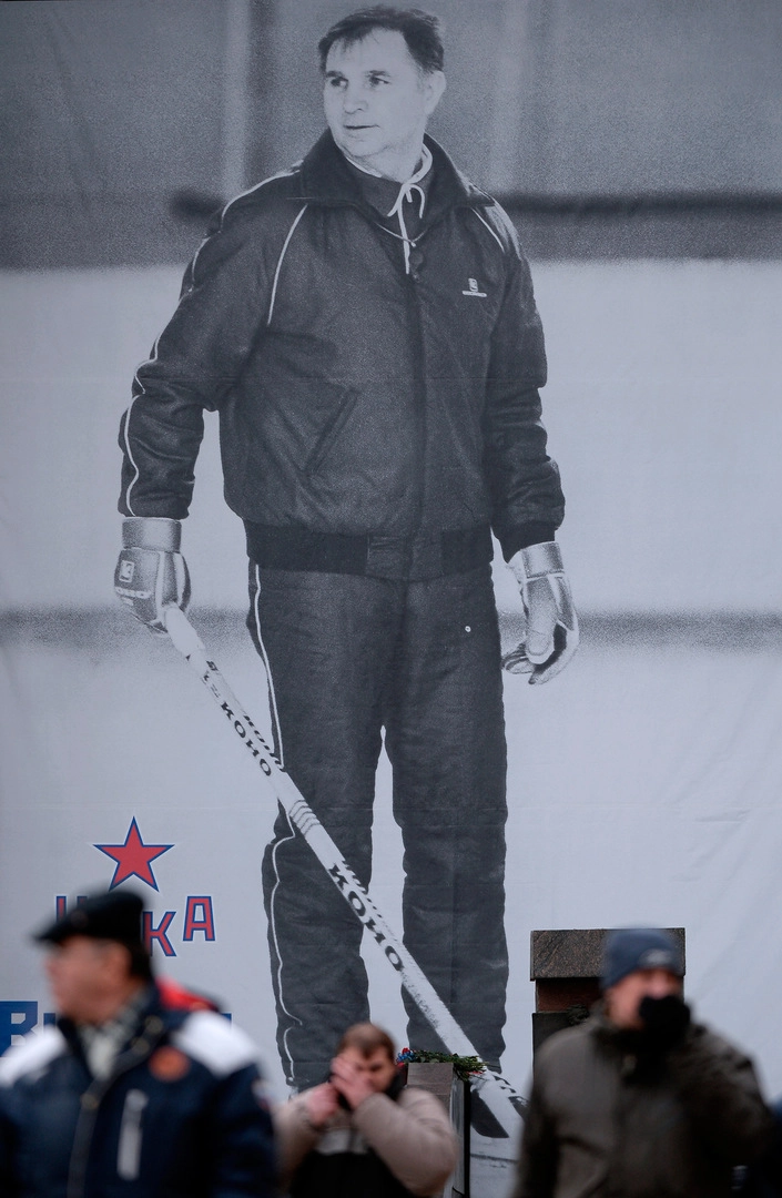 На экранах, расположенных над ледовой ареной, сменяют друг друга кадры из жизни тренера и эпизоды матчей сборной СССР, сообщает «Интерфакс» — и приводит факты биографии прославленного спортсмена: