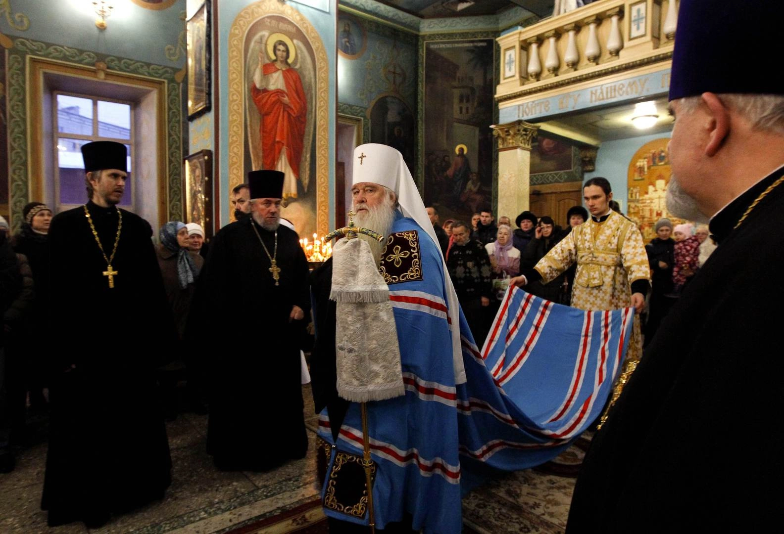 Митрополит Волгоградский и Камышинский Герман прибывают до службы в канун православного Рождества в Казанском соборе в Волгограде.