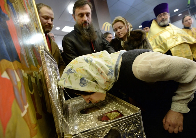 Встреча одной из главных святынь христианского мира - Даров волхвов, впервые привезенной в Москву из монастыря Св.Павла на горе Афон.