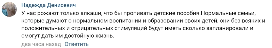 По мнению демографа, эти нововведения помогут «задавать статус» на большее потомство. Тем не менее не уточняется, в каком возрасте должны будут рожать россияне, чтобы избежать уплаты налога.