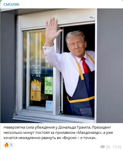 Россиянам от «работы» Дональда Трампа за прилавком «Макдоналдс» захотелось во «Вкусно и точка»