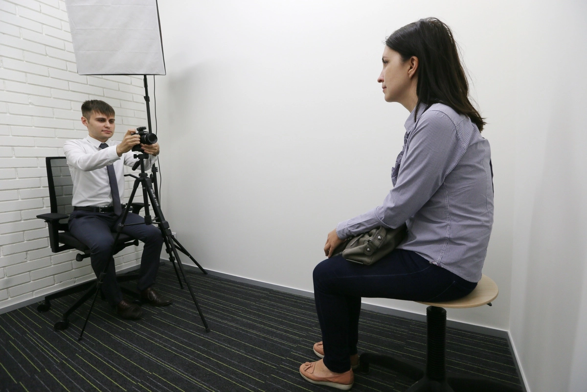 На снимке человек должен изображаться строго в анфас и смотреть прямо с нейтральным выражением лица. Рот должен быть закрыт, глаза — открыты и не занавешены волосами.