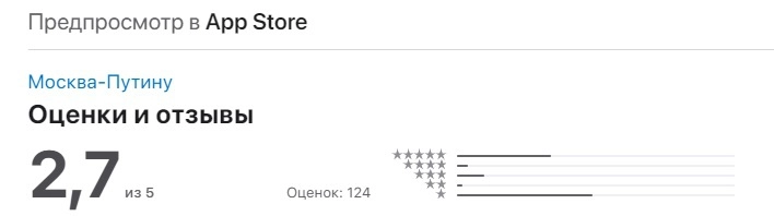 Приложение получило в App Store усредненную оценку в 2,7 баллов из 5. Больше всего оказалось тех пользователей, которые выставили сервису «Москва — Путину» минимально возможный балл. Они объясняют это неудобством обращения с приложением для пресс-конференции главы государства.