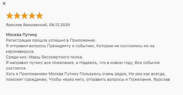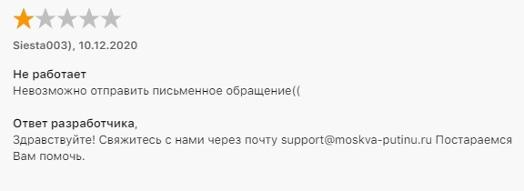 Нашлись и такие комментаторы, которые разобрались в приложении и сумели направить свои предложения и жалобы российскому лидеру. Их достаточно много: оценка в пять баллов для сервиса «Москва — Путину» — вторая по распространенности в App Store. Но даже «счастливчики» сталкивались со сбоями.