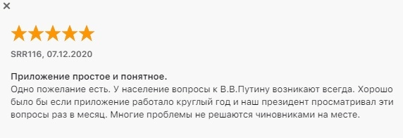 Разработчики, как правило, дают ответ, что «все обращения будут обработаны волонтерами». Но покупатели приложения все равно беспокоятся, что их вопросы президенту пропадут зря.