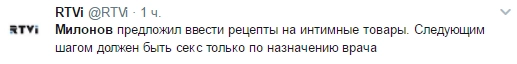 Россияне остро восприняли попытку депутата Госдумы Виталия Милонова в очередной раз влезть в сферу их интимной жизни. Речь о его предложении министру здравоохранения РФ Веронике Скворцовой приравнять интимные товары к медицинским изделиям, установить на них лицензии и продавать только по назначению врача.