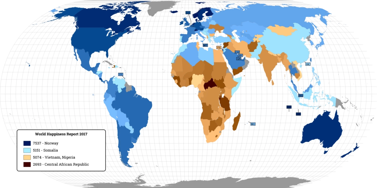 Опубликованная в 2017 году в Колумбийском университете (Нью-Йорк) «карта счастья» приводит к поразительным выводам.