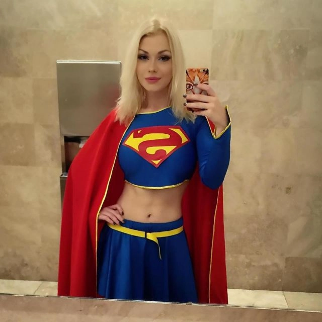 Ниже представлены снимки россиянки в образе Женщины-кошки, Супердевушки и Лары Крофт.