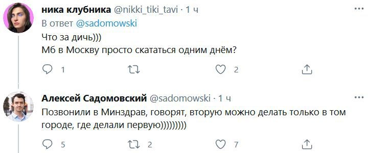 Подписчики парламентария предложили выход из ситуации — съездить на вакцинацию в Москву, однако Садомовский со ссылкой на Минздрав заявил, что вторую прививку можно делать только в том городе, где был поставлен первый укол.