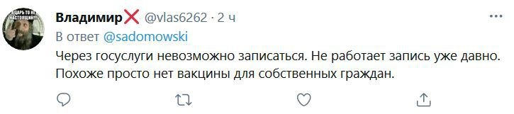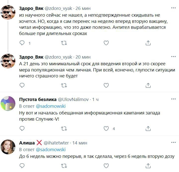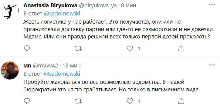Как вообще такое может, блин, произойти? И что делать теперь, там окно определённое между вакцинами должно быть. Зато сколько вакцины продали? — написал Садомовский в Twitter.