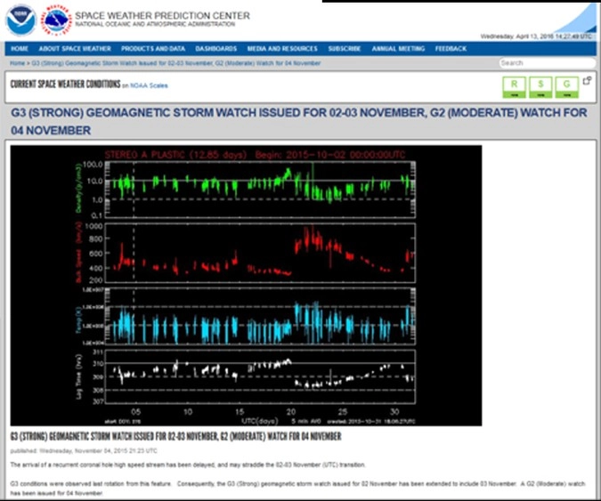 В то же время, согласно информации Американского центра мониторинга космической активности и погоды, повышенная солнечная активность была 2−3 ноября, а уже 4 ноября происходил спад, не угрожающий инфраструктуре радиокоммуникаций.