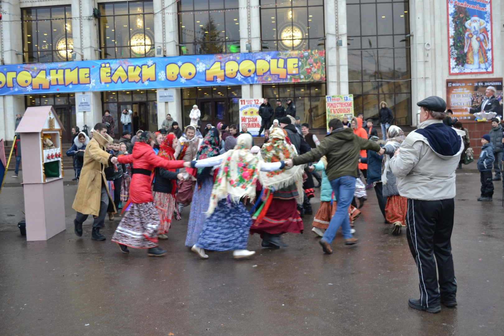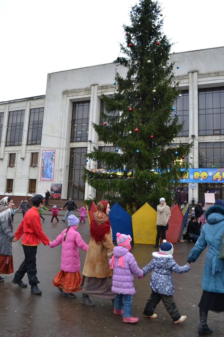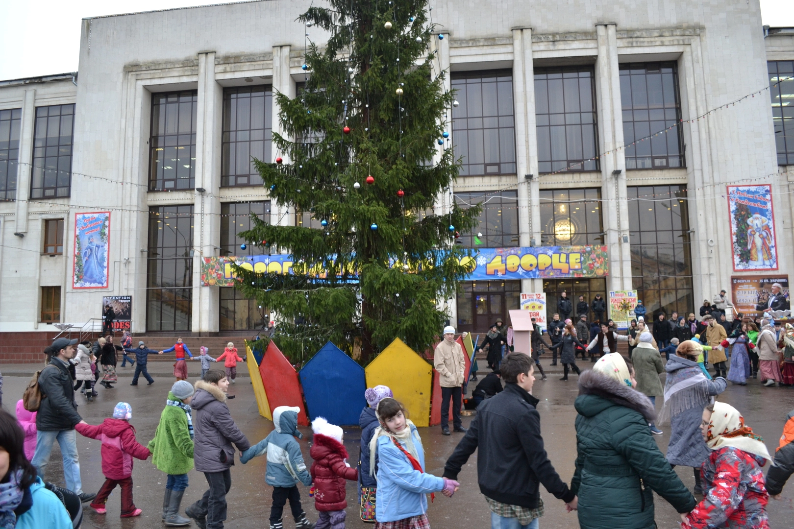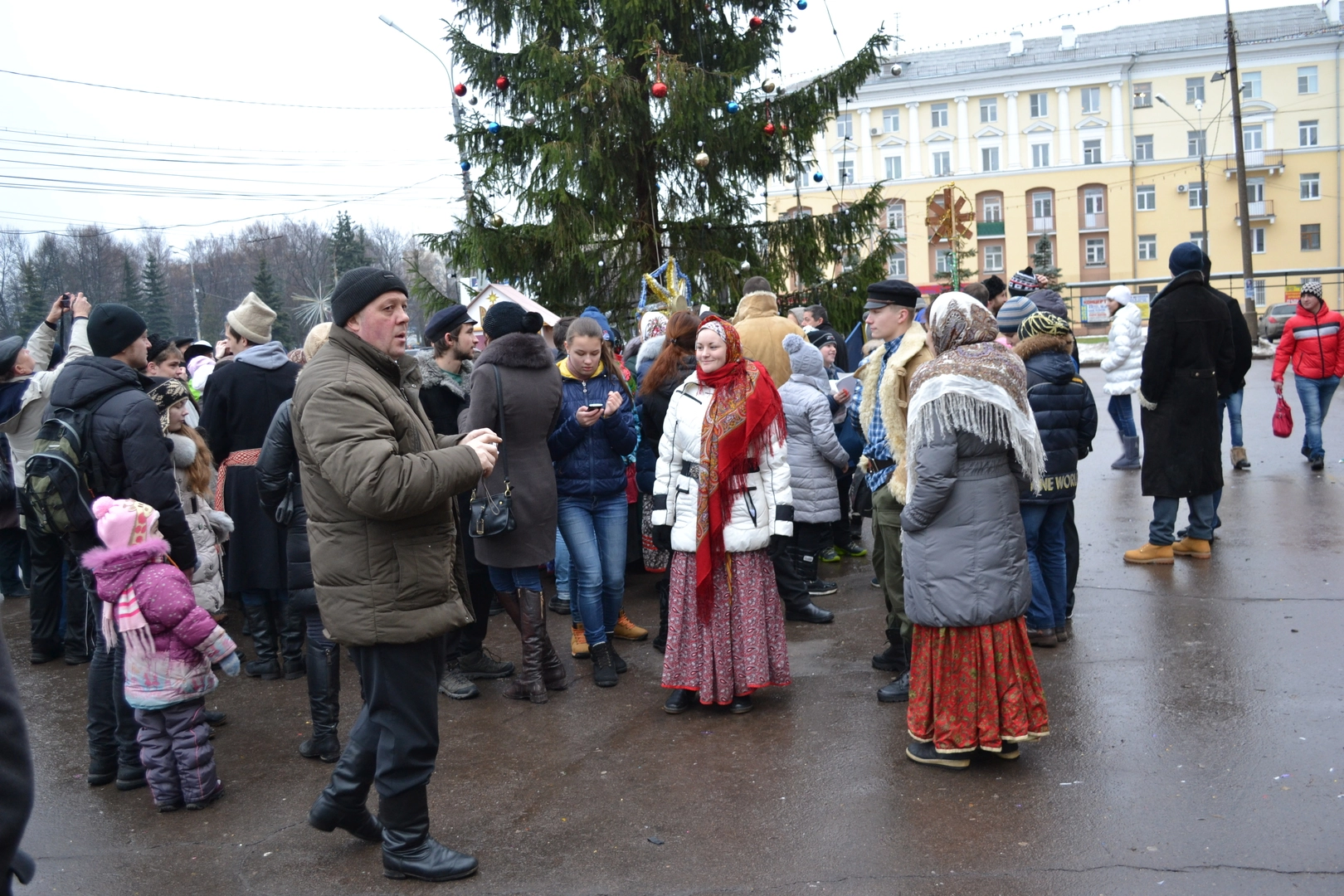 Все, от мала до велика, ходили большим хороводом вокруг стоящей на площади новогодней ели, весело распевая частушки, играли в «Ручеек» и другие традиционные забавы.
