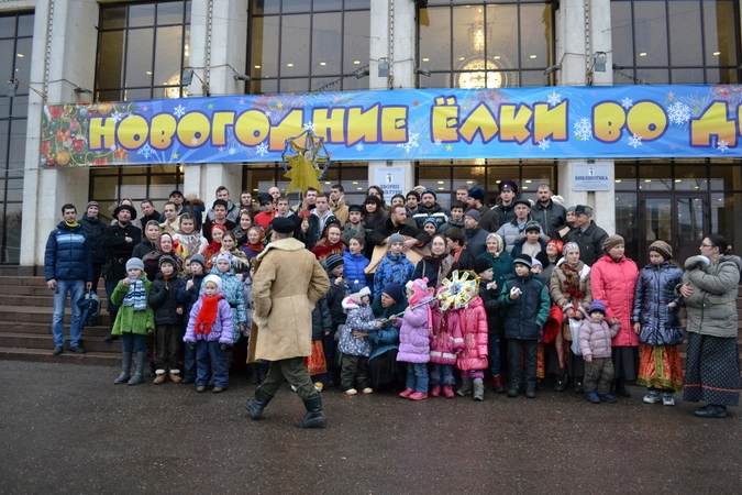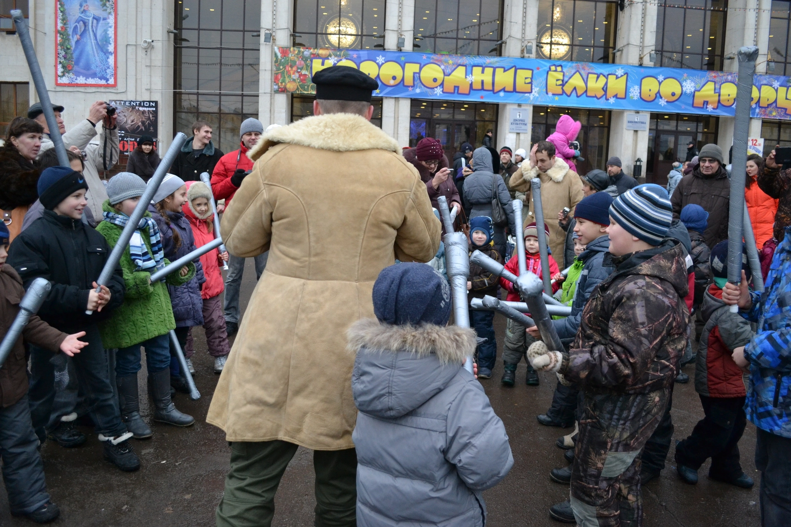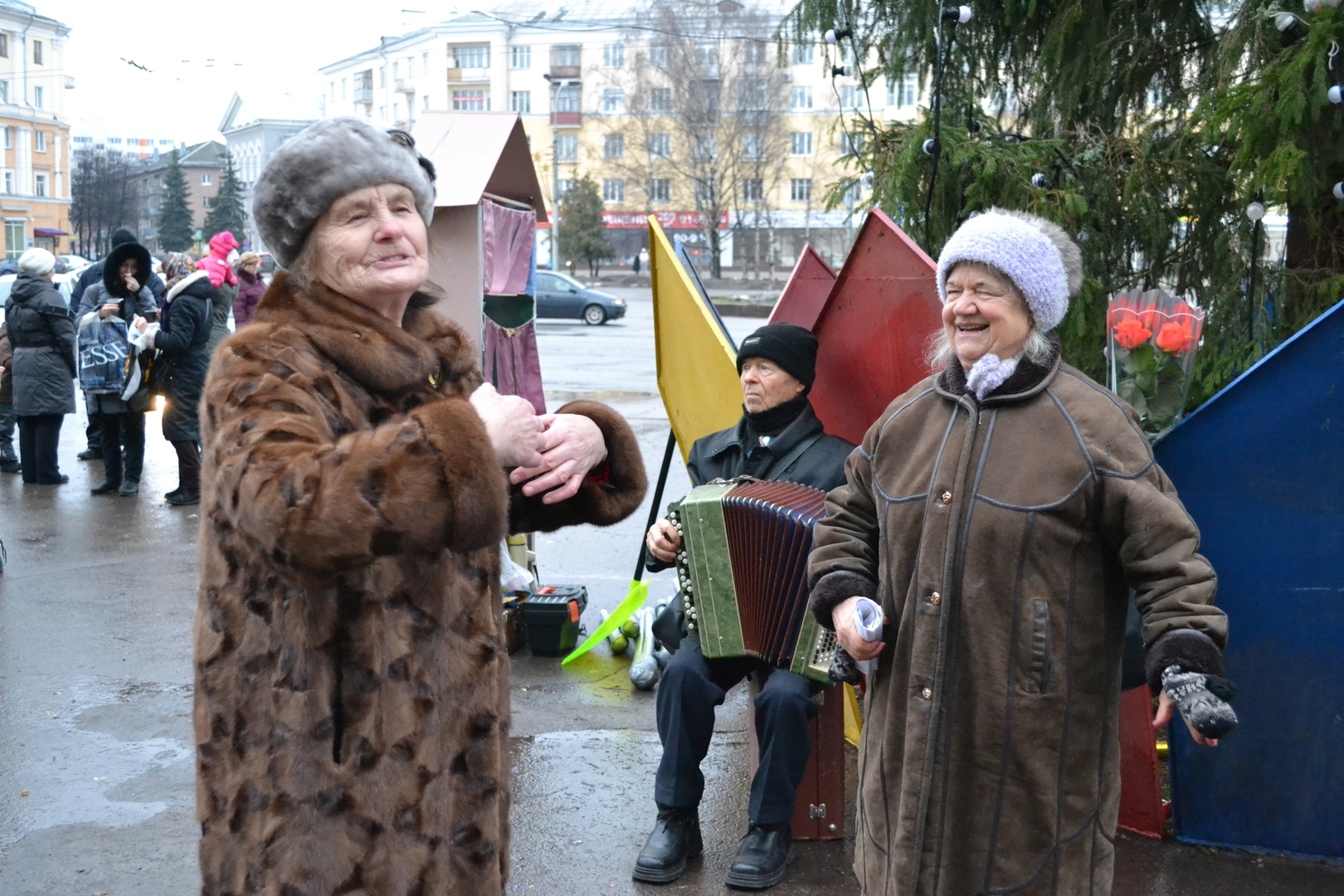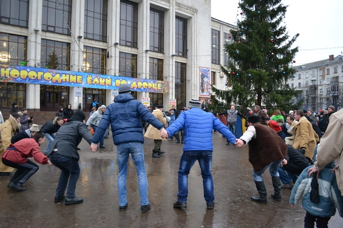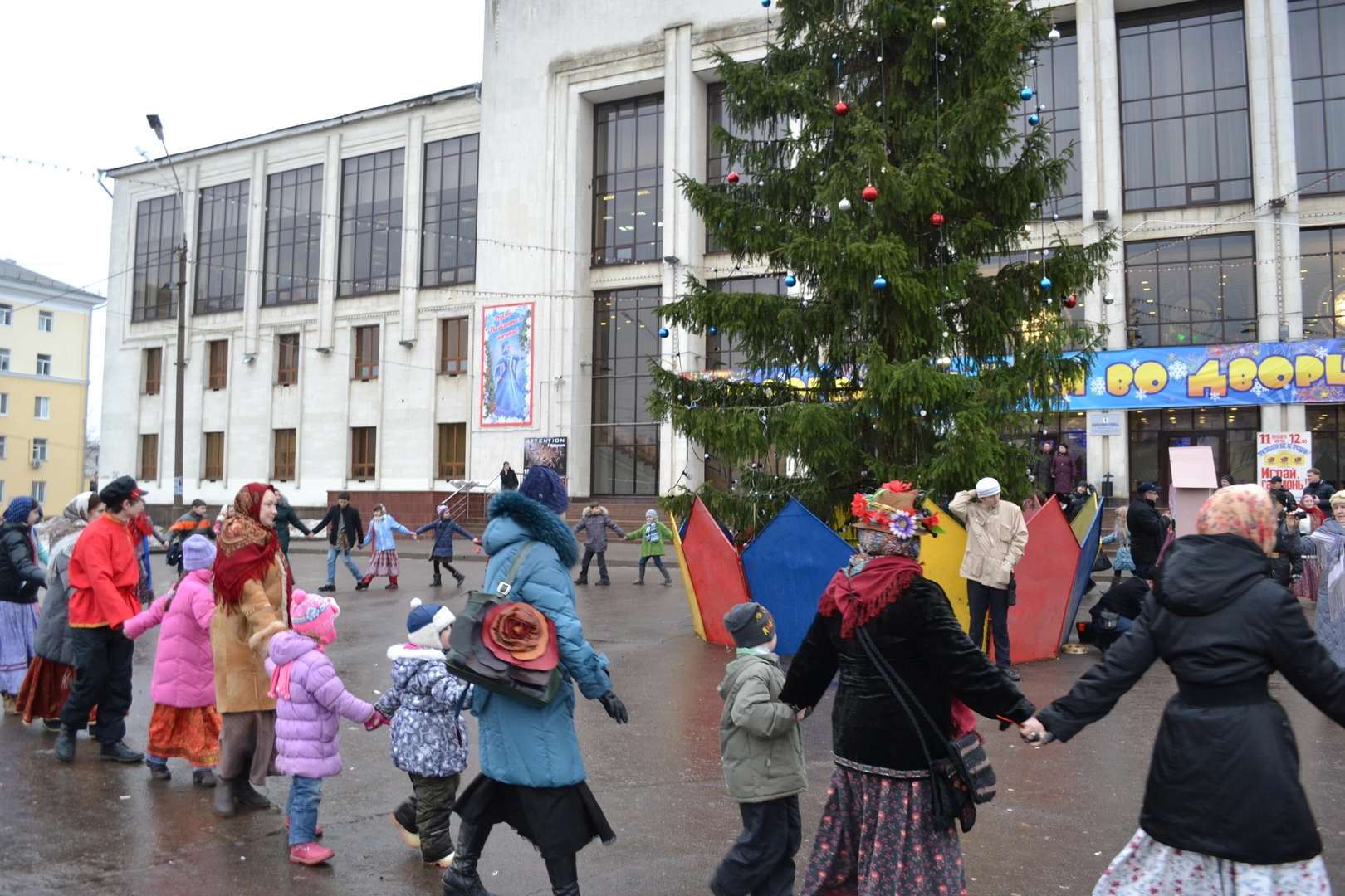 Все, от мала до велика, ходили большим хороводом вокруг стоящей на площади новогодней ели, весело распевая частушки, играли в «Ручеек» и другие традиционные забавы.