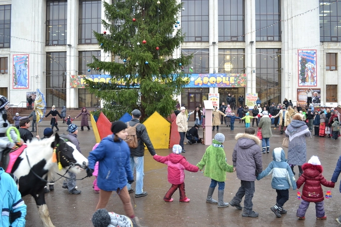 На одной из площадей города были организованы Рождественские гуляния. И, хотя алкоголь и табак были под запретом, скучно не было никому. Организаторы постарались, чтобы для всех пришедших нашлось занятие: женщины и девушки водили хороводы и пели традиционные народные песни, мужчины мерялись силами, а уж для детей и вообще было раздолье, но обо всем по порядку.