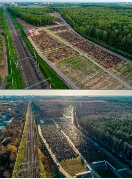 В соцсетях активно распространяется фото Бутовского кладбища в Москве, которое дважды было сфотографировано с воздуха — в мае и в ноябре 2020 года. Авторство снимка приписывают пользователю Twitter под ником @EvgenyFeldman. На кадрах видно, насколько с 28 мая по 9 ноября увеличилось число могил на кладбище.