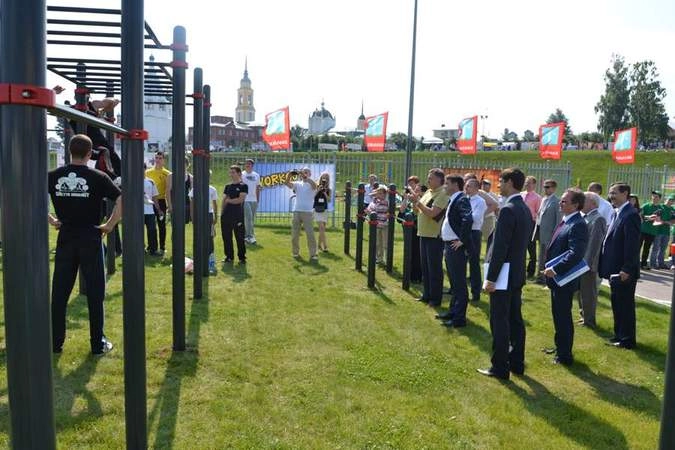Андрей Воробьев, Олег Жлобов и др. на открытии воркаут-комплекса в Коломне © Ridus.ru