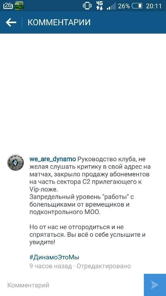 Болельщики клуба уверены, что данный шаг руководства ФК «Динамо» вызван тем, что оно не желает слушать многочисленную критику в свой адрес от «олдскульных» фанатов.