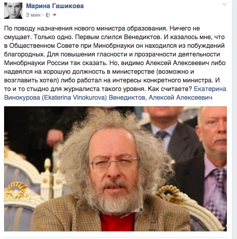 «По мне - так истерика Венедиктова ещё раз подчеркивает правильность решения Путина по Ливанову и кандидатуре нового Министра», - резюмировал шаг Венедиктова Владимир Бурматов.