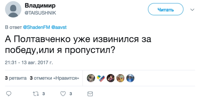 Впрочем, обитатели соцсетей эти подробности проигнорировали, обвинив Полтавченко в предательстве родной команды.
