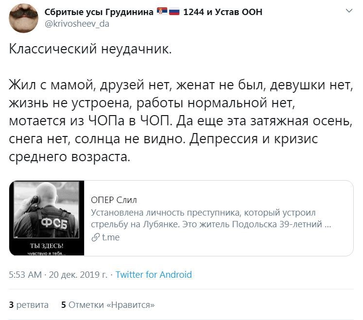 Рунет повесил на стрелка с Лубянки ярлык неудачника