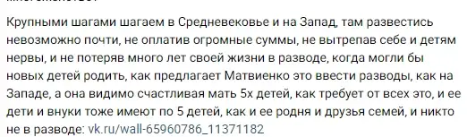 «Для детей очень важно мужское влияние и воспитание. Поэтому хочется, чтобы семья была такая полноценная — мама, папа и пятеро детей. Это замечательно», — сказала спикер Совфеда.