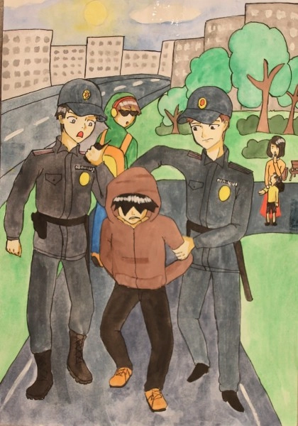 В Сети наибольший интерес вызвал рисунок 9-летней Арины Муриной из Татарстана, на котором изображено, как два сотрудника полиции задержали смуглого мужчину с бородой и в тренировочном костюме за то, что он отнял у детей велосипед. Некоторые блогеры посчитали подобный сюжет расистским, но большинство отметило его несомненную правдивость.