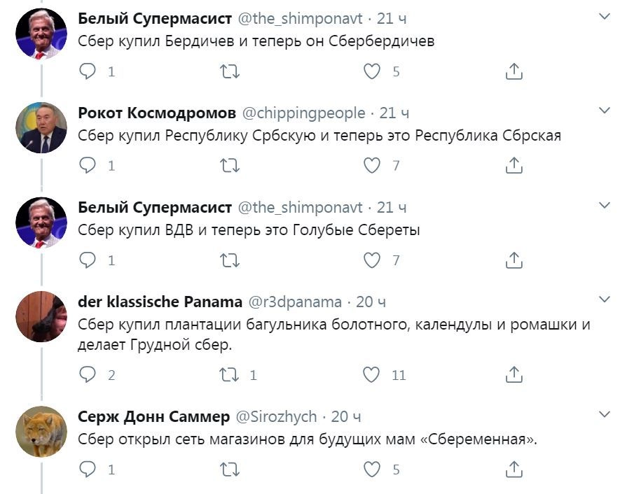 Особенно много насмешек вызвала идея включать название «Сбера» в наименования всех внутренних сервисов. Блогеры немедленно начали соревноваться с остроумии и переименовали Берингов пролив в «Сберингов», а Джастина Бибера в «Джастина Сбербера».
