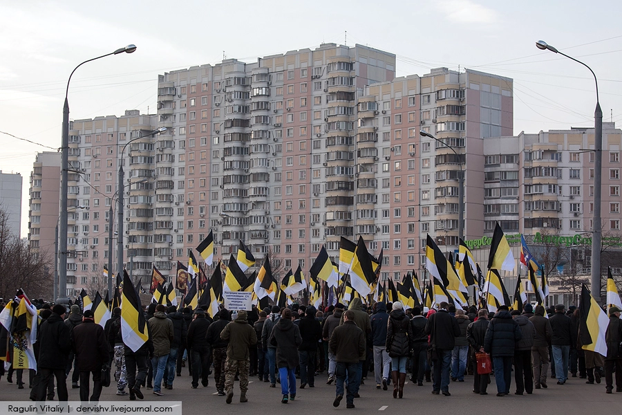 В Щукино же двигались, в основном, взрослые (и даже бывалые) люди. Неадекватов хватало и там — но общим фоном Щукинского марша были не «балаклавы» и паленые «лонсдейлы», а «горки» и «цифры» с нашивками ДНР. В Щукино хоругви и портреты Романовых мирно соседствовали с нацболовскими «лимонками». В Щукино было подлинное единство — пусть и единство радикалов. В Люблино — собрание сознательных отщепенцев.