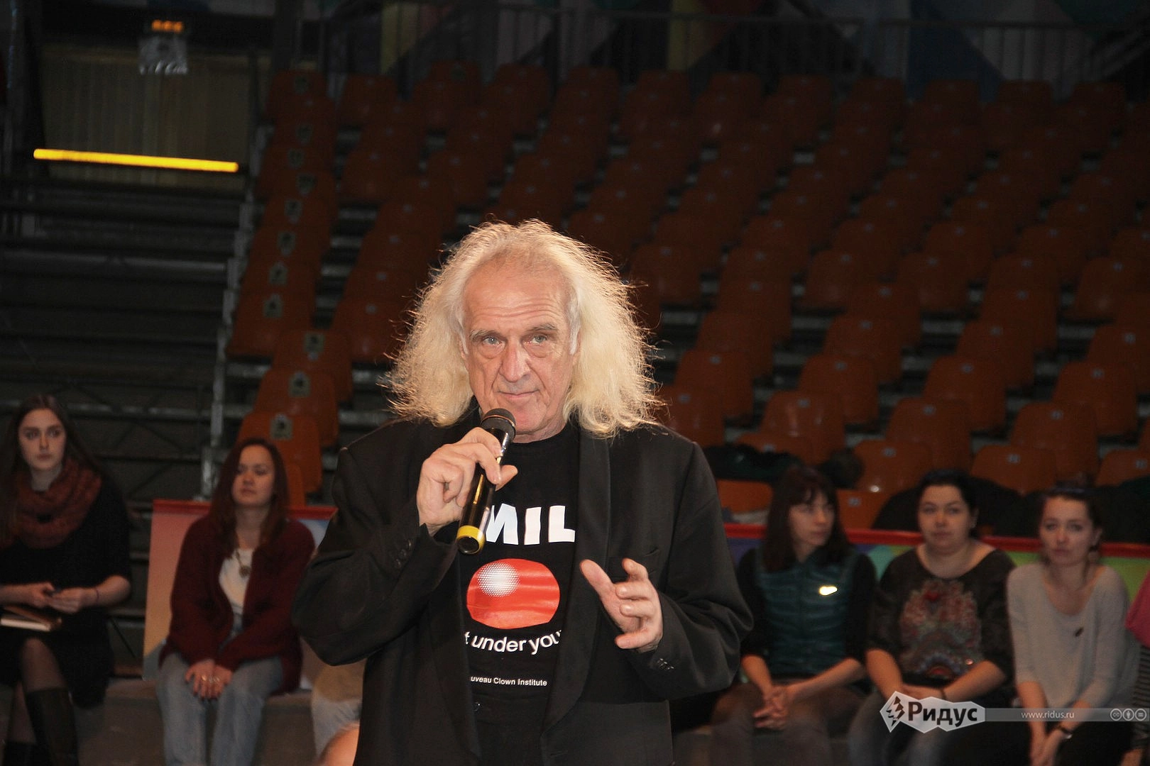 «Не так давно я понял, что главное для клоуна, да и для каждого из нас, всегда говорить правду, — завел речь на мастер-классе Джанго Эдвардс и тут же показал свои способности ее резать. — Я сорок пять лет употреблял всевозможные виды наркотиков. Скрывал это, врал. Обманывал разных женщин, изменял им. Потом я сам изменился. Я рассказал дамам, как я их обманывал. Одни дали мне по лицу, другие — простили, и мы теперь дружим. С некоторыми я даже снова переспал. Я до сих пор злоупотребляю разными стимуляторами, но теперь я этого не скрываю».