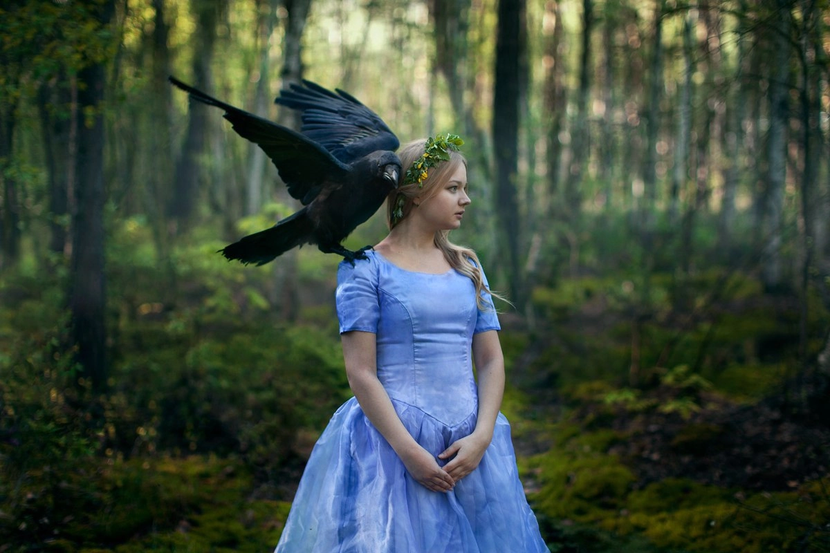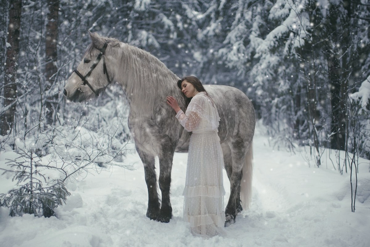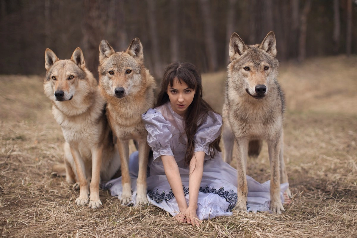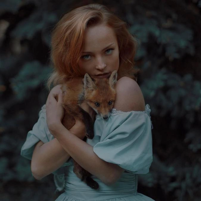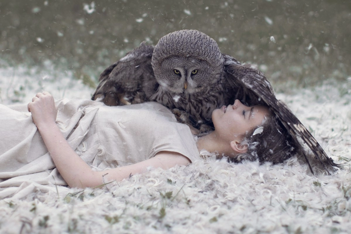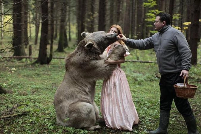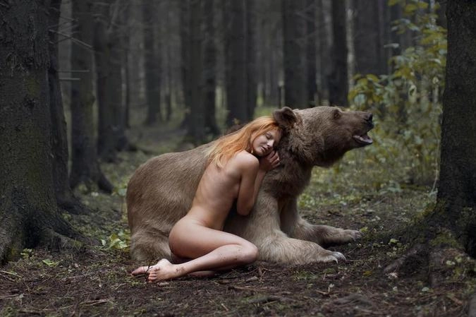 Московский фотограф Катерина Плотникова создаёт удивительные портреты девушек с настоящими дикими животными и птицами. На её снимках модели обнимаются с медведями, спят рядом с лосями и укладывают живых змей в причёску.