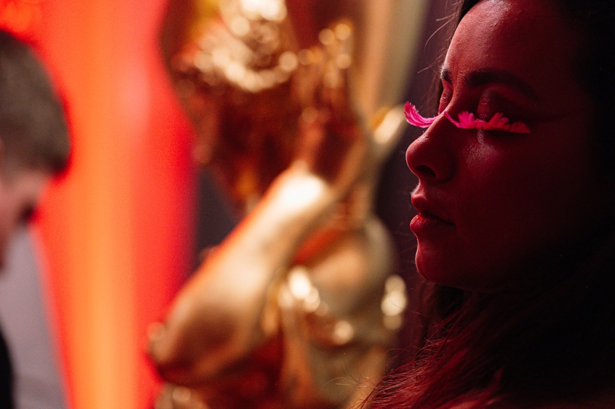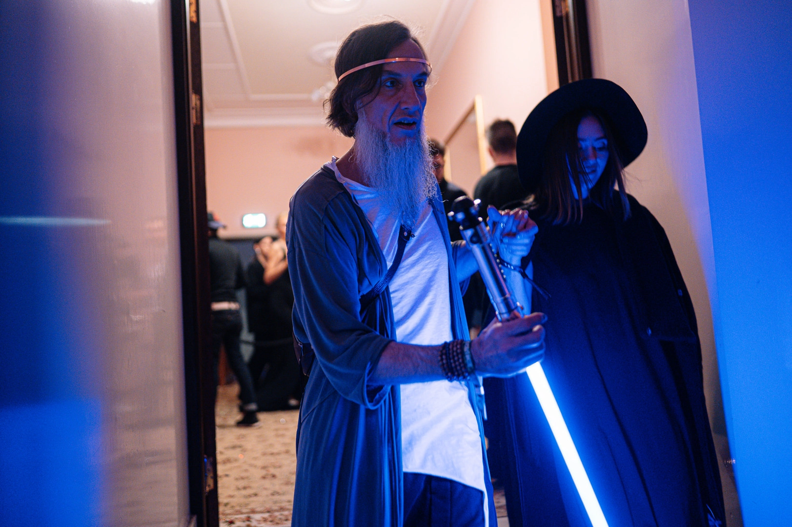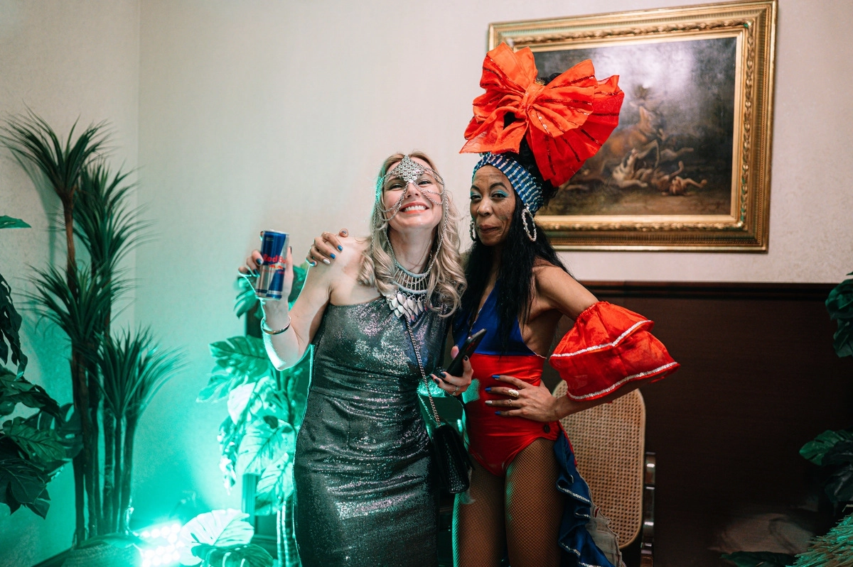 В ходе пати, правда, был замечен еще один вариант дресс-кода, весьма неожиданный. Часть гостей вечеринки не просто приехала ворваться на танцпол, улетно угореть и отправиться далее, а прямо-таки заселилась в отель. Оно и понятно — кто-то специально прилетел из другого города, и перспектива прямо с воздушного корабля оказаться на балу, не приведя себя в порядок и должный вид, ему не казалась космической.