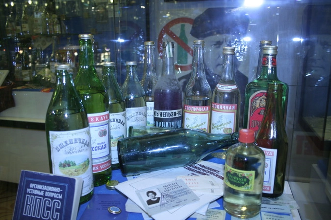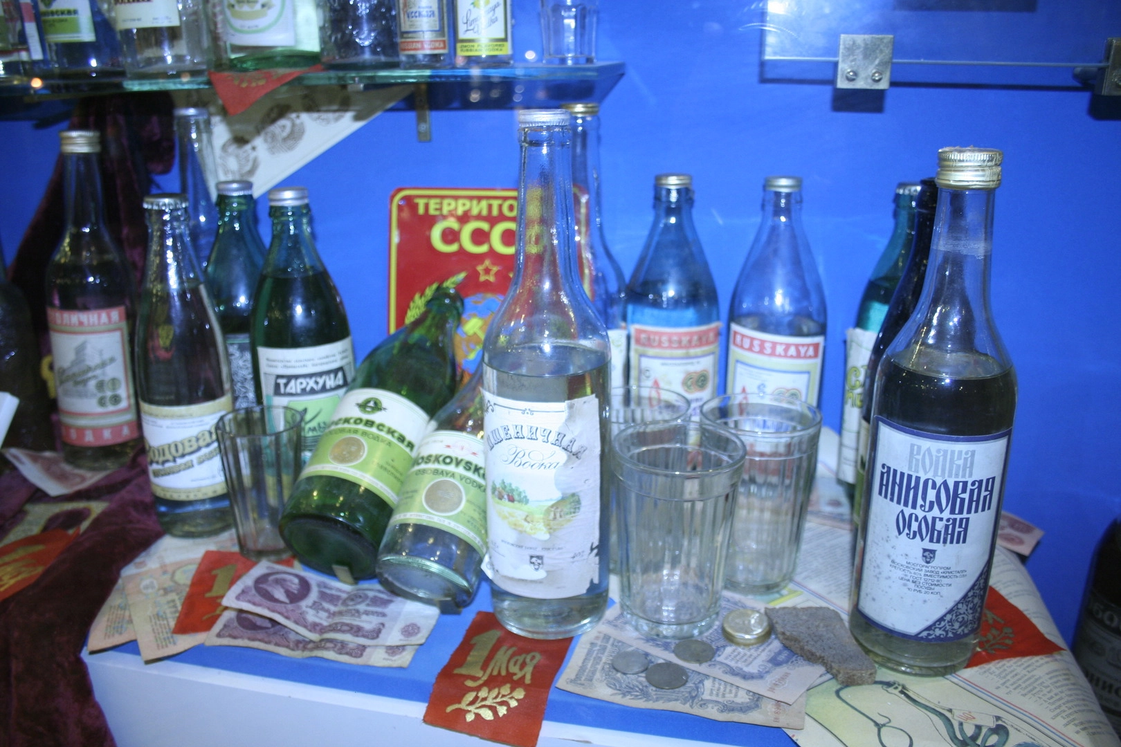 Цены на все медленно, но верно поползли вверх. Повышение до 3.62 выглядит как первый звериный оскал развитого социализма. В ответ трудовой народ дружно не перестает бухать, ограничивая себя в еде во время обеденных перерывов. Духом пока не падают и шутят по-доброму. Алко-гимн того времени - песня Высоцкого про Серегу, а главный повод для насмешек – бутылка, запечатанная пробкой-бескозыркой, тоже, кстати, нашедшей свое место в музее.