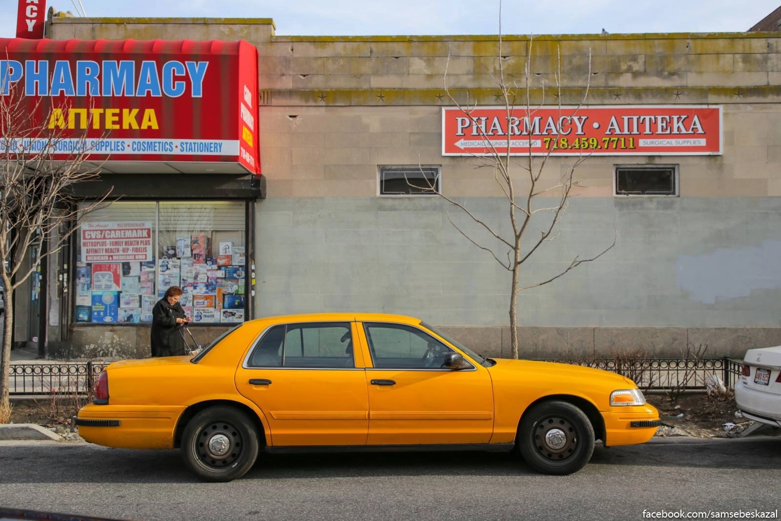 Аптека и старое нью-йоркское такси. До чего живучие машины. Она в такси полмиллиона миль прошла и еще ездить будет.