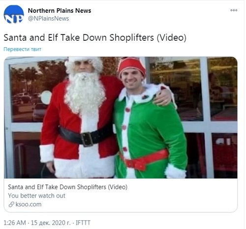 По странному совпадению в тот же день в Калифорнии эльф и Санта-Клаус арестовали двух предполагаемых угонщиков автомобилей. Дело было у оживленного торгового центра Riverside. Задержание сняли на видео и выложили в Сеть.