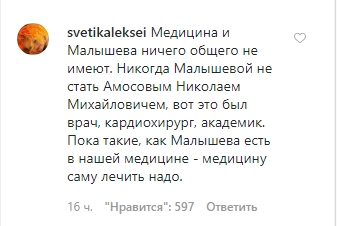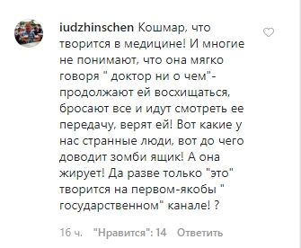 Многие комментаторы высказали мнение о том, что за время телевизионных эфиров Елена Малышева настолько скомпрометировала себя, что доверять ее медицинским знаниям небезопасно.