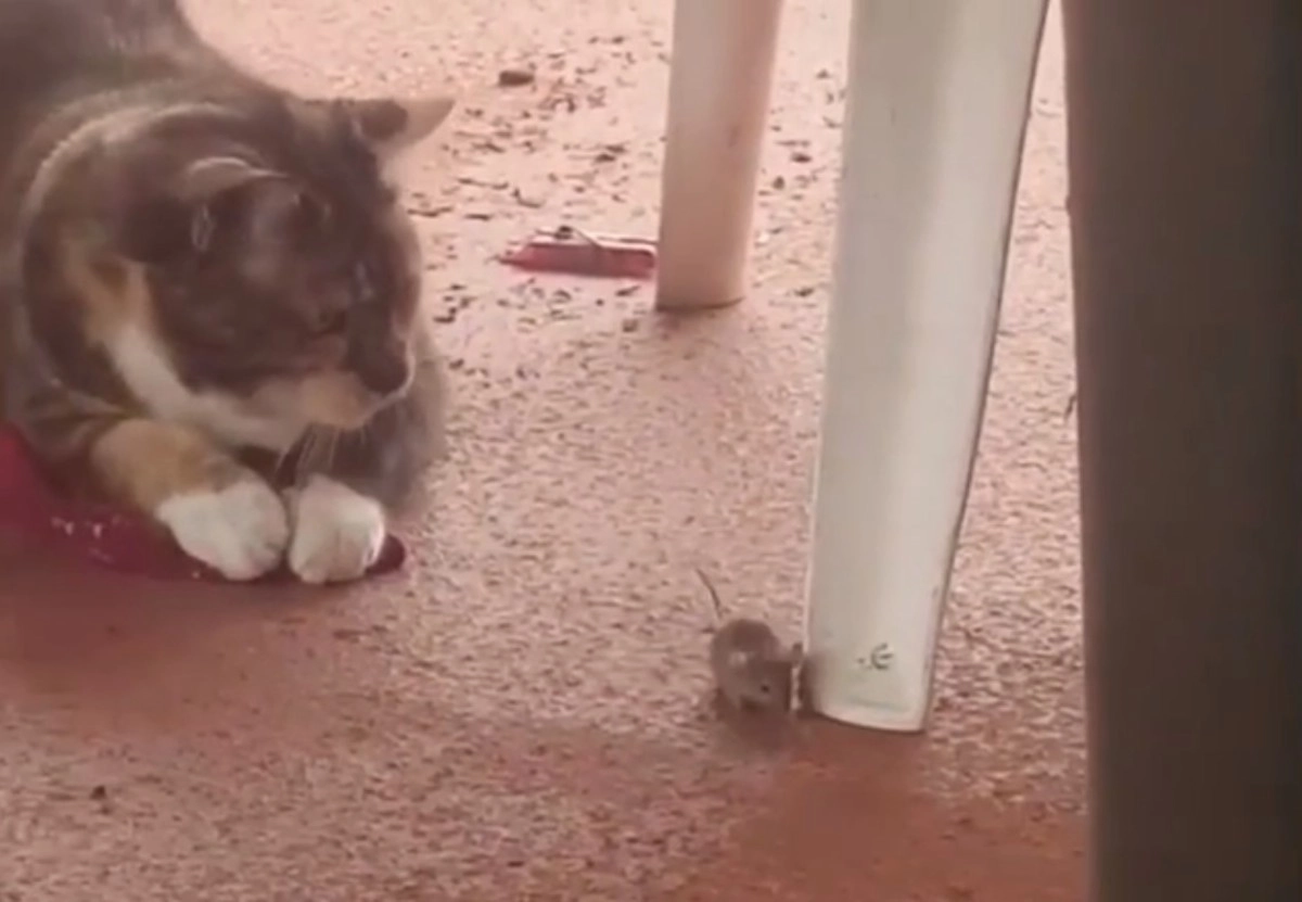 Сам черт не брат: безбашенная мышь прыгнула прямо коту в лапы