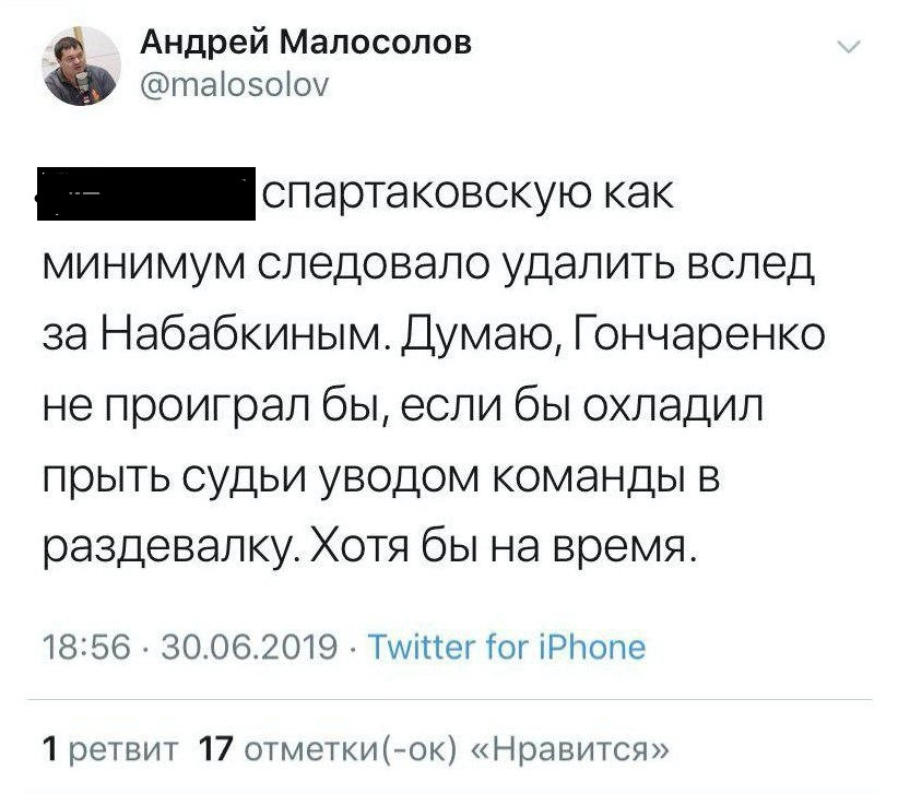 Андрей Малосолов также рассказал, о чем писал в вызвавшей скандал записи в Twitter.